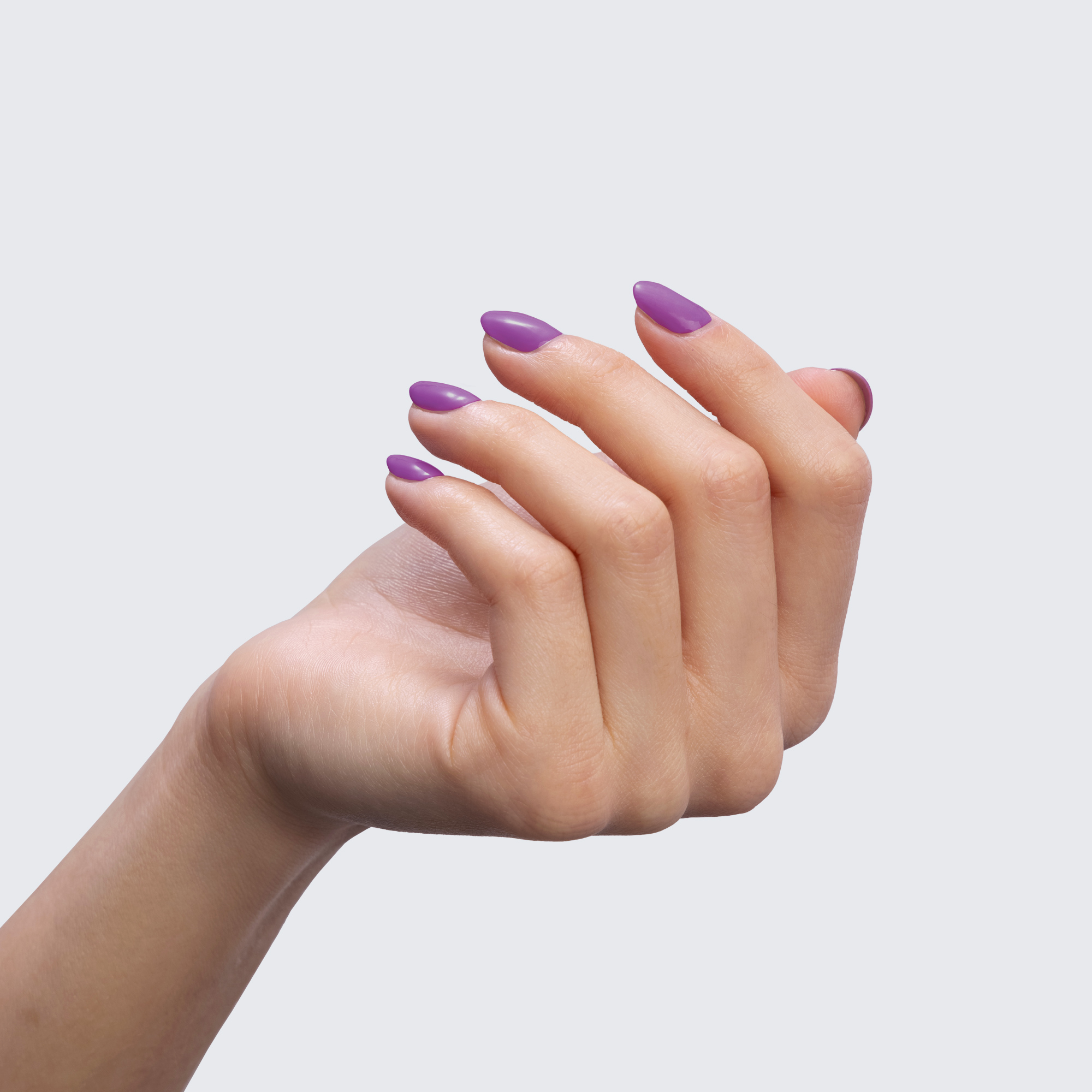 Neon purple. Light. Opaque. Cool undertone. Semi-gloss.